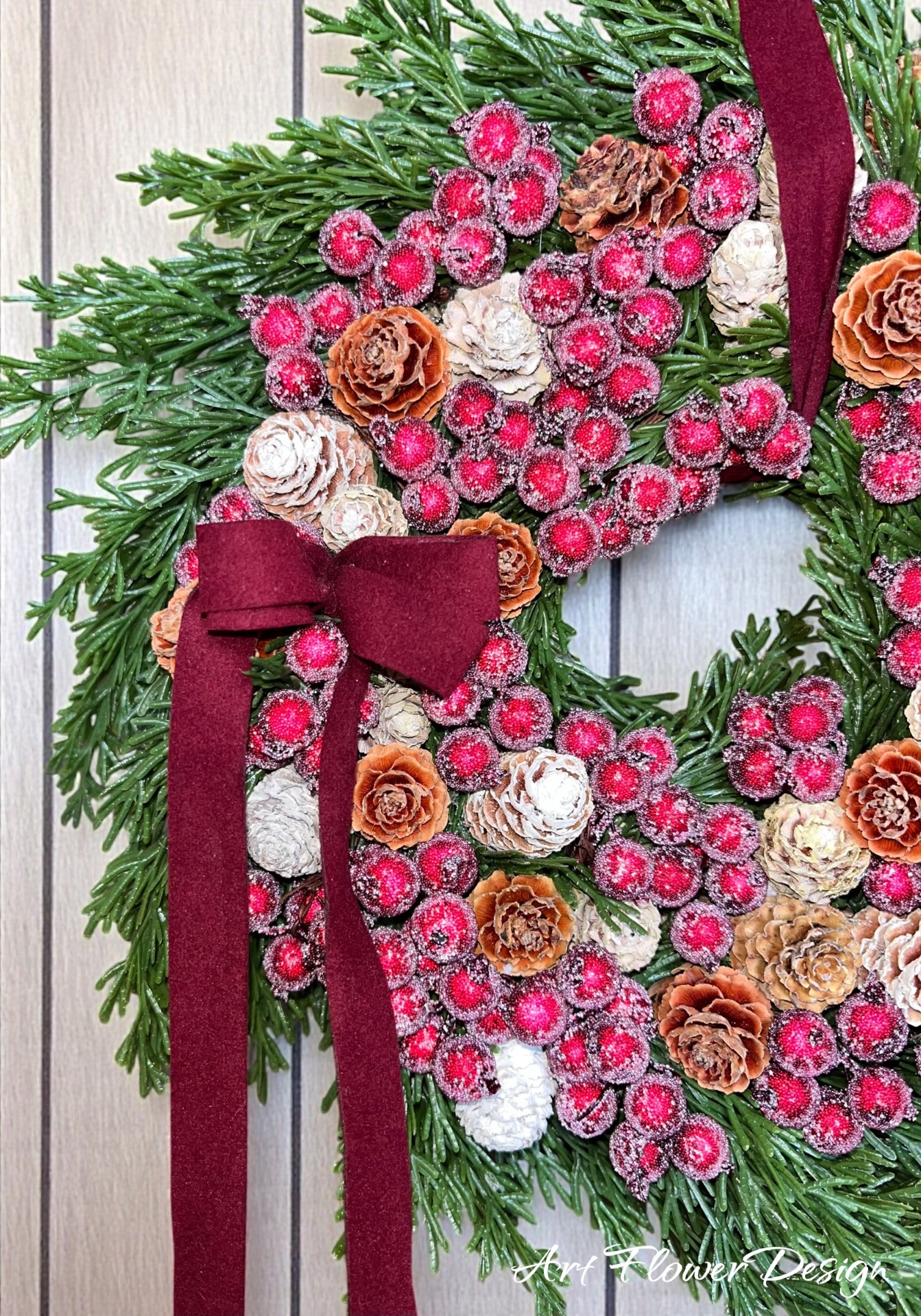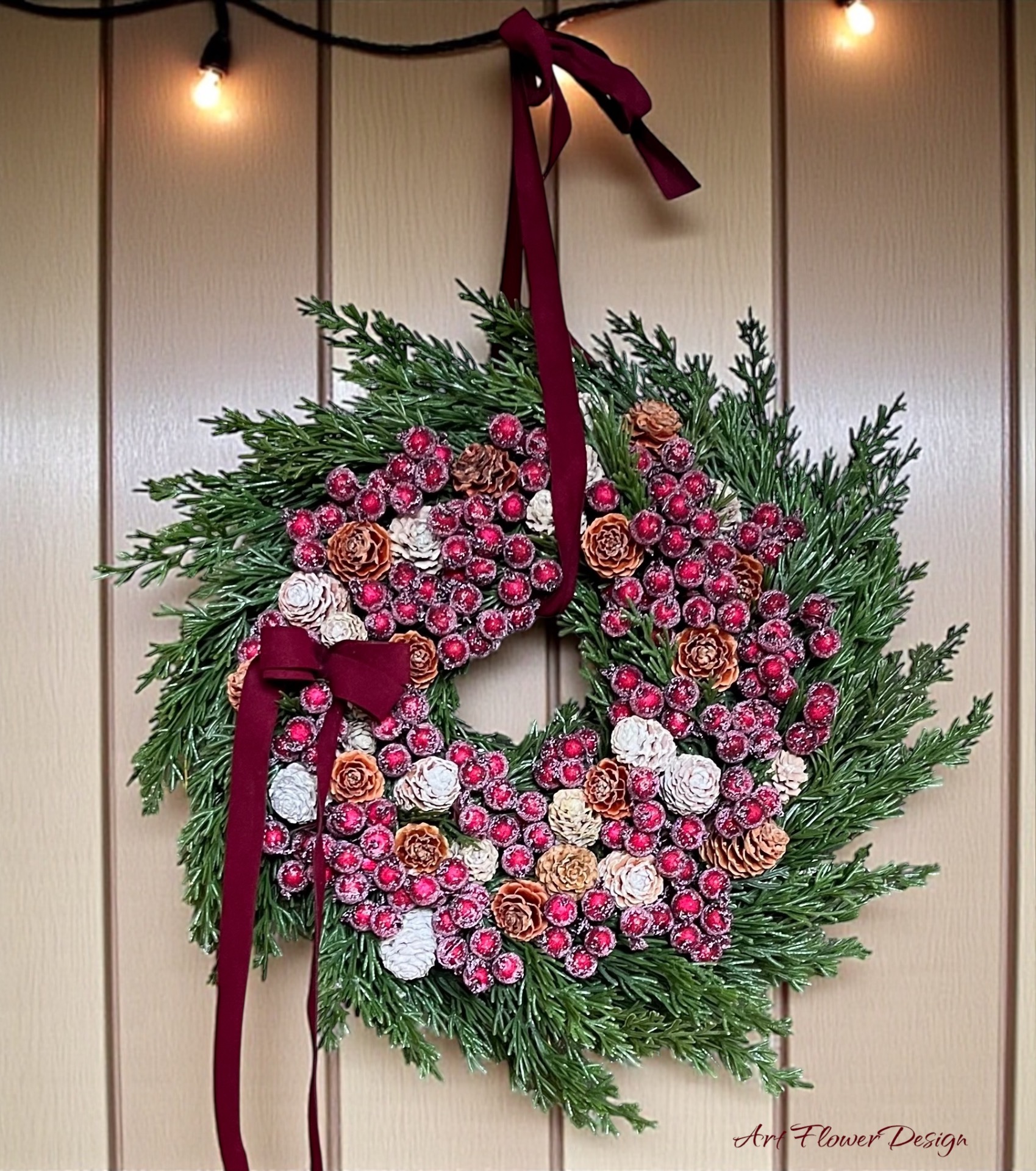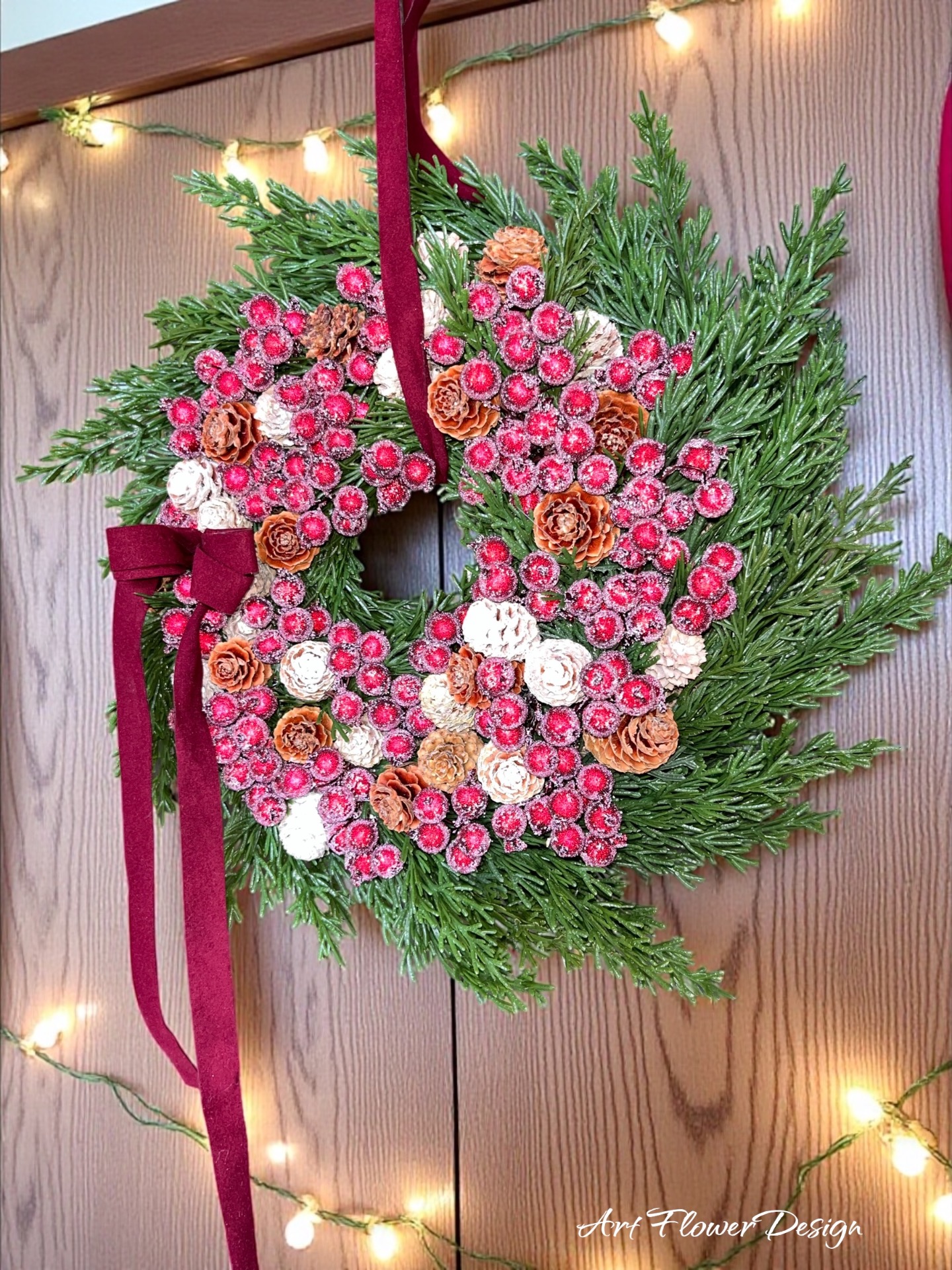 Bordó bogyós élethű fenyős kopogtató