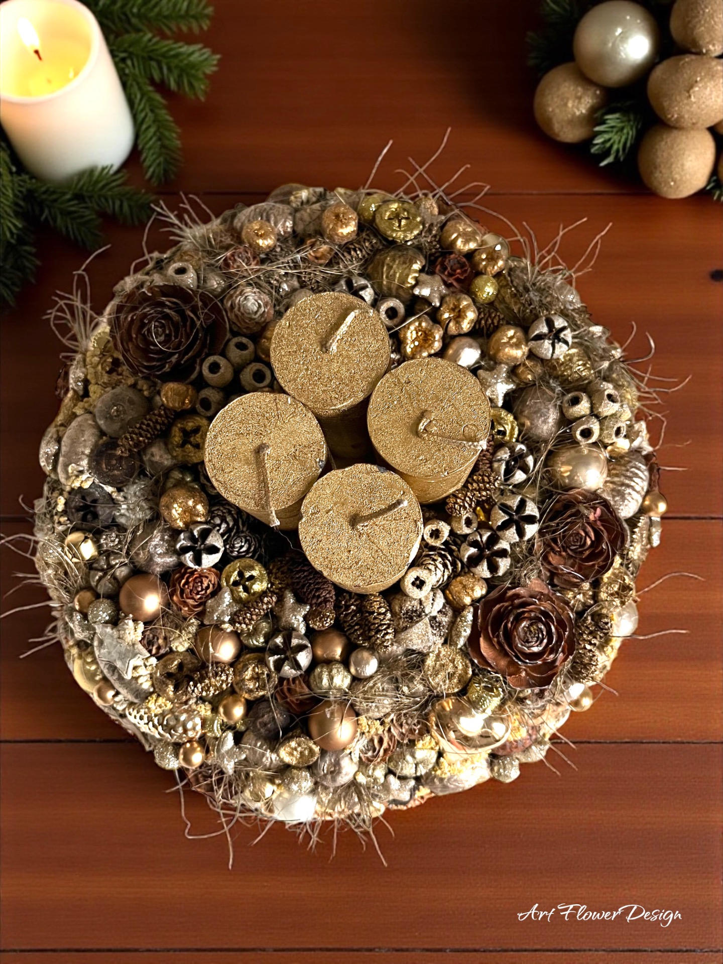 Elegáns arany adventi koszorú